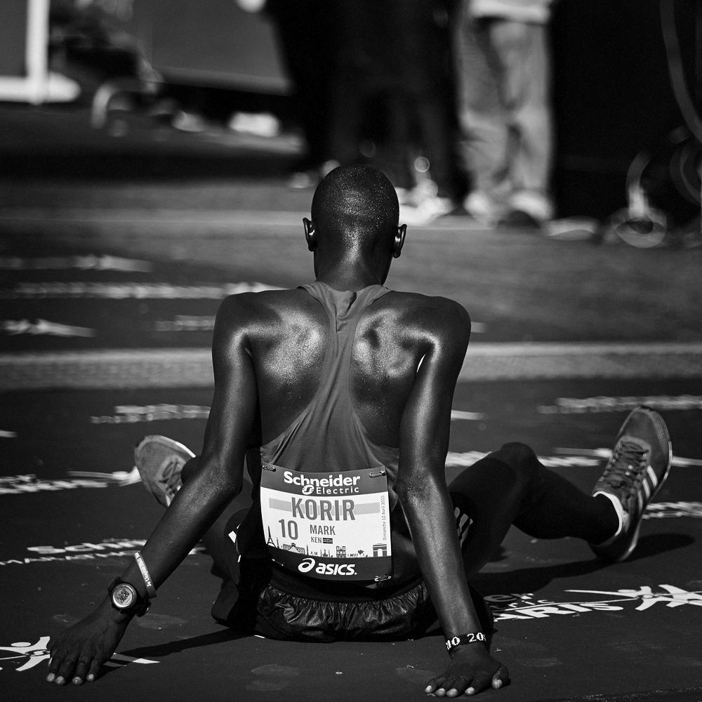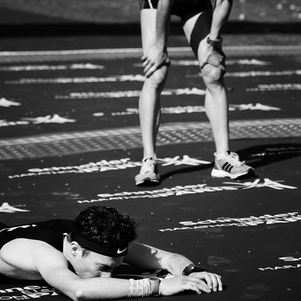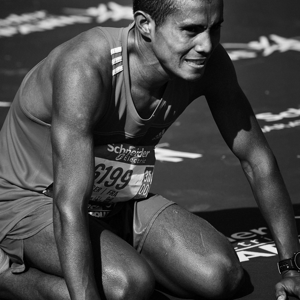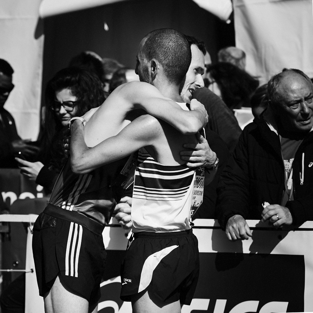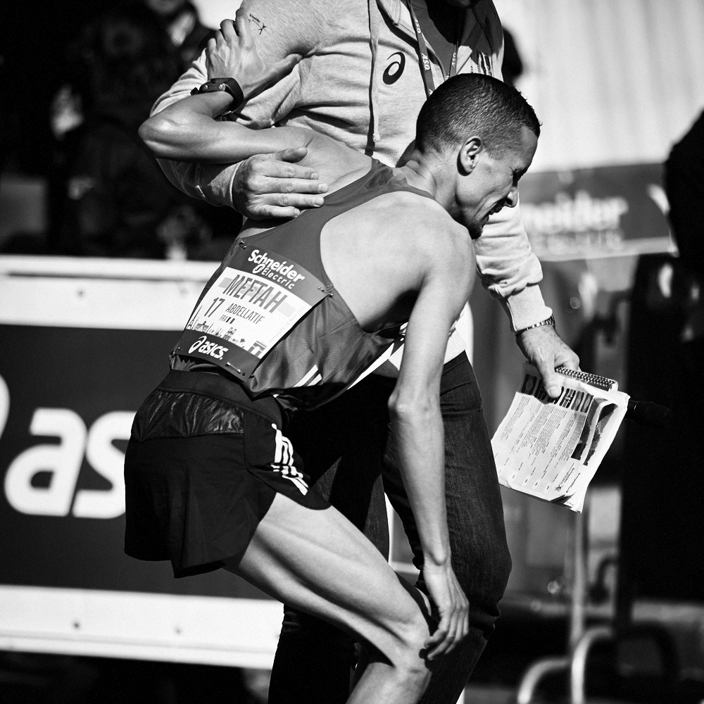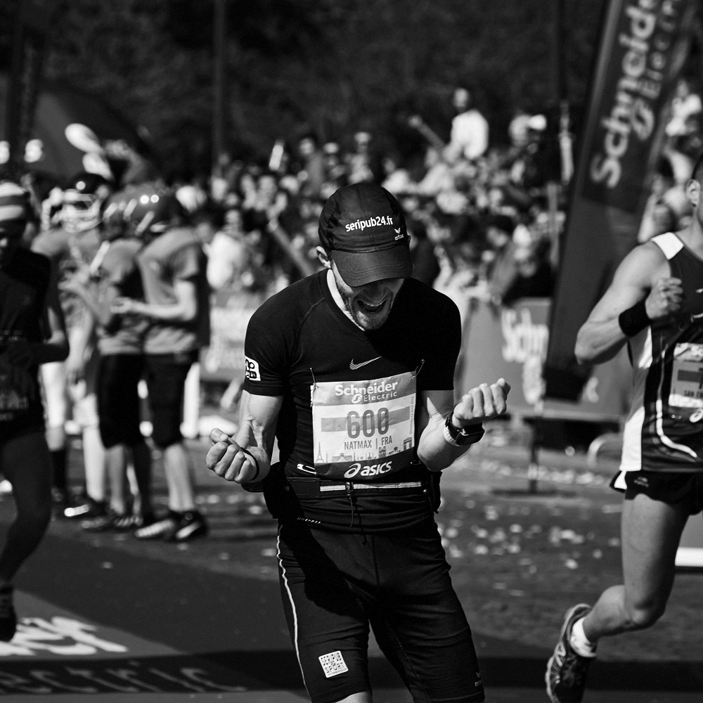 Sur la ligne d’arrivée du Marathon de Paris, les expressions de joie et de douleurs se mêlent et se partagent.