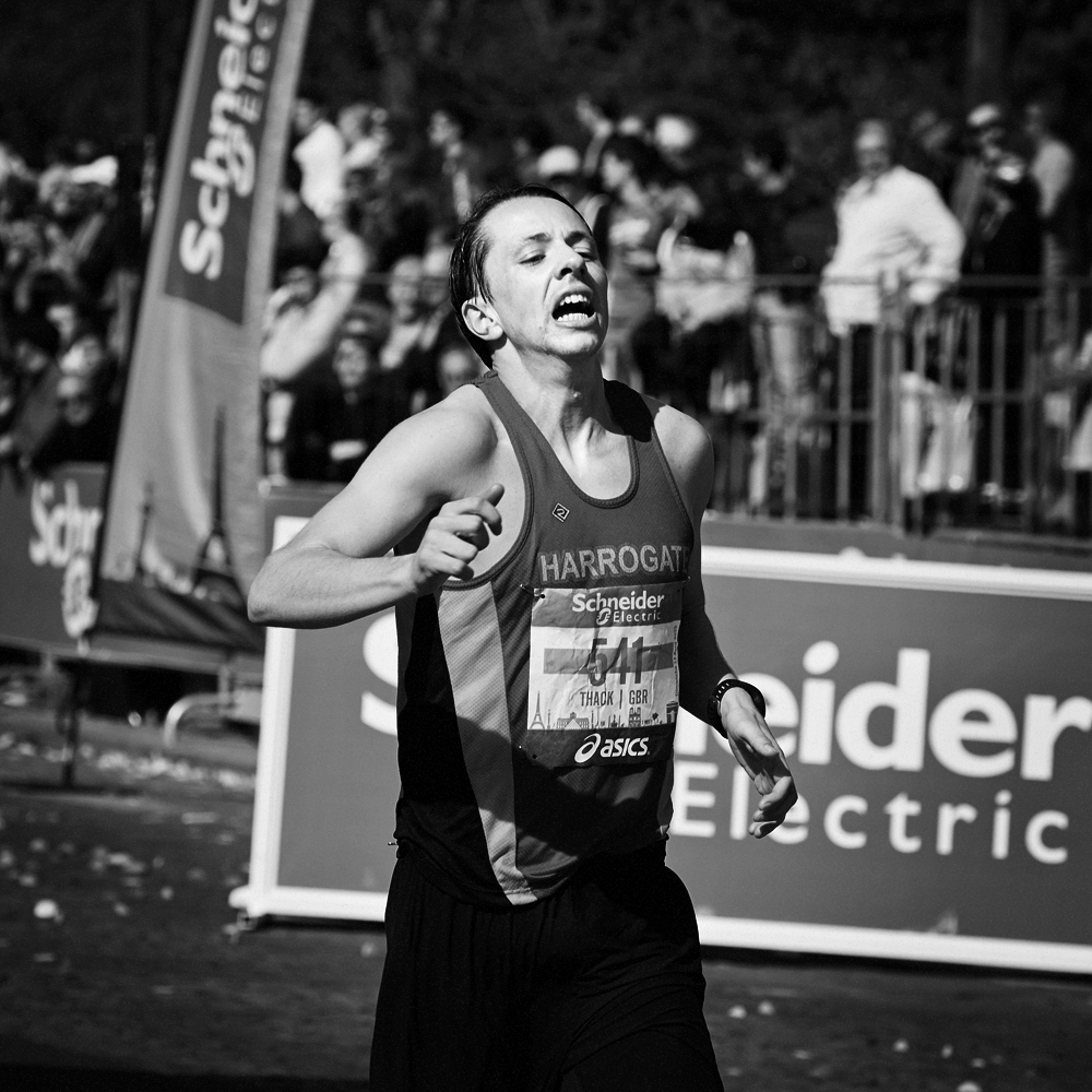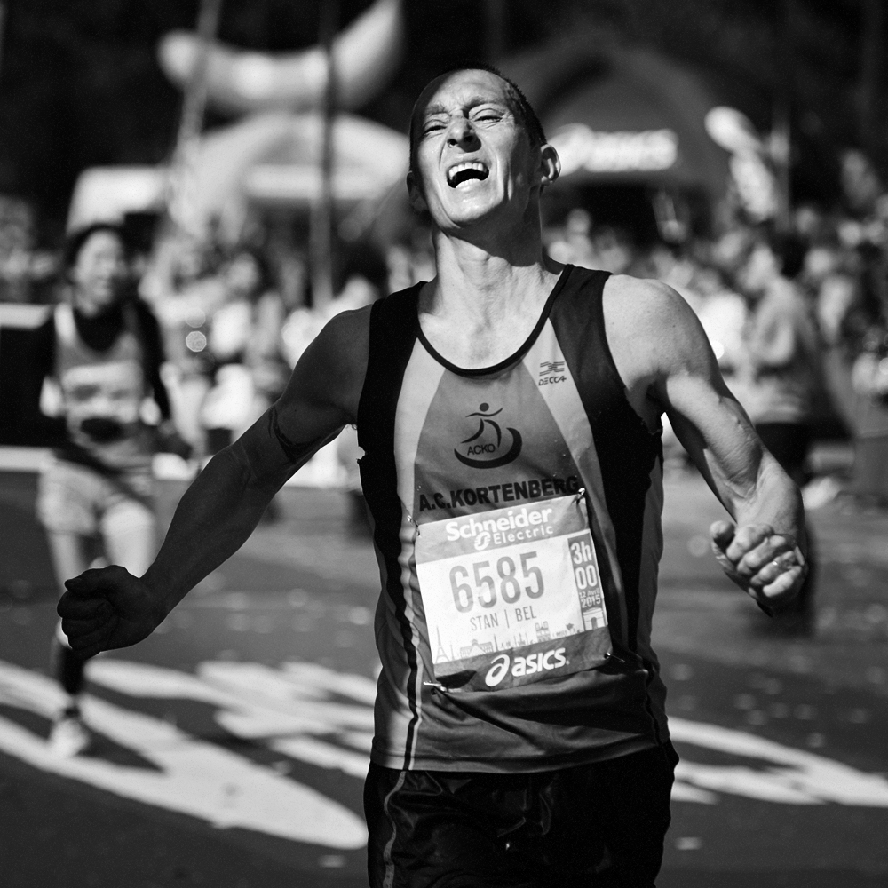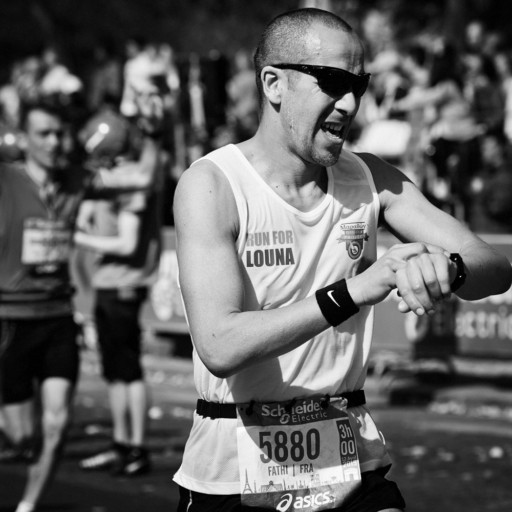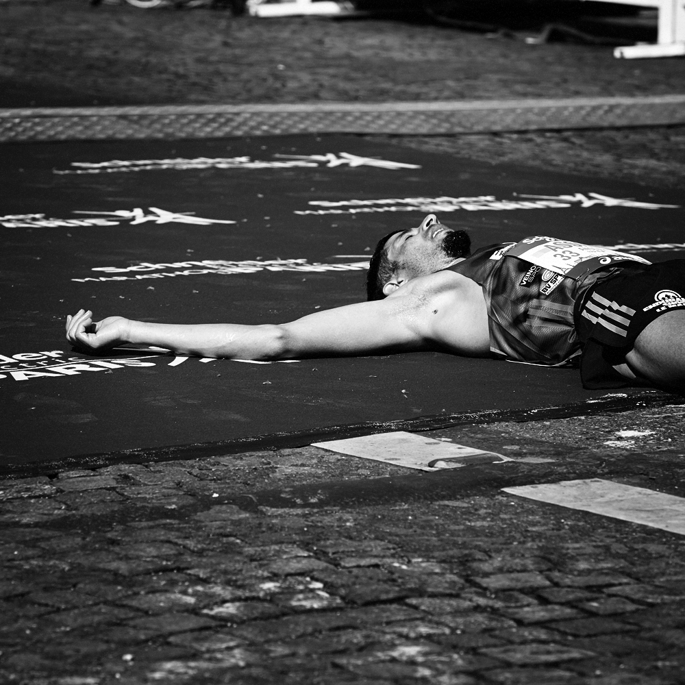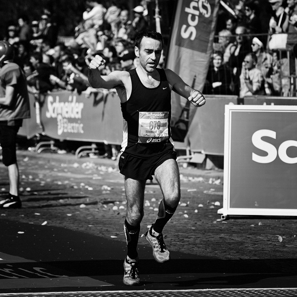 Sur la ligne d’arrivée du Marathon de Paris, les expressions de joie et de douleurs se mêlent et se partagent.