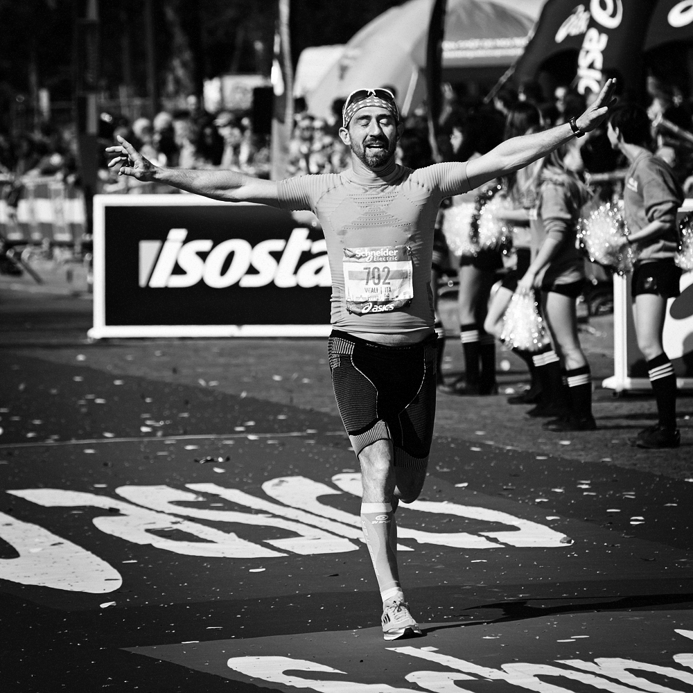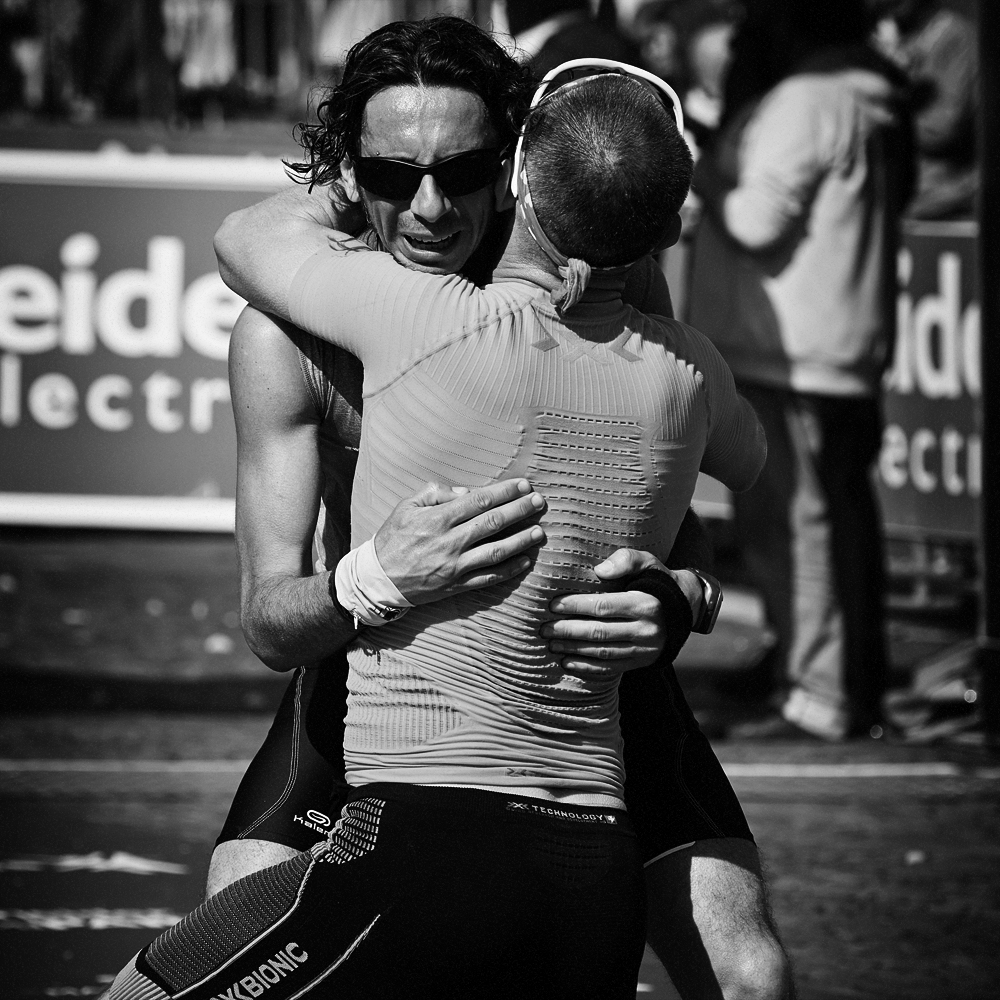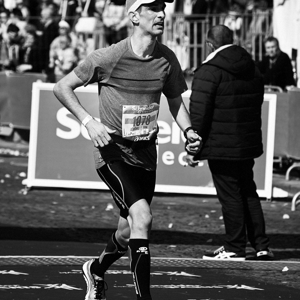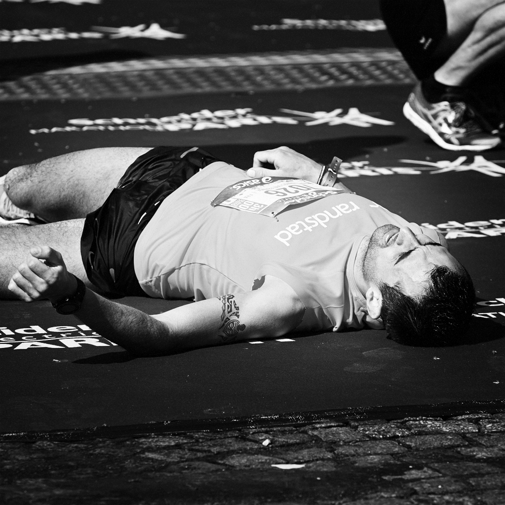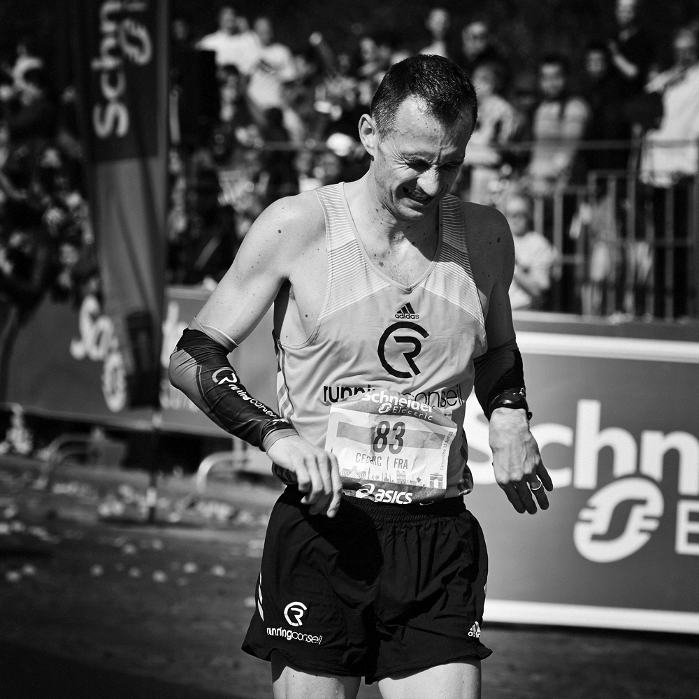 Sur la ligne d’arrivée du Marathon de Paris, les expressions de joie et de douleurs se mêlent et se partagent.